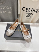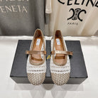 ALAIA MARY JANE FLATS white mix metallic champagne gold woven calfskin pattent