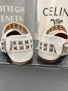 Alaila Biker Ballet Flats In White Cowhide 911438
