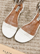 ALAIA SANDAL IN WHITE CALFSKN AND FILM WITH CRYSTAL