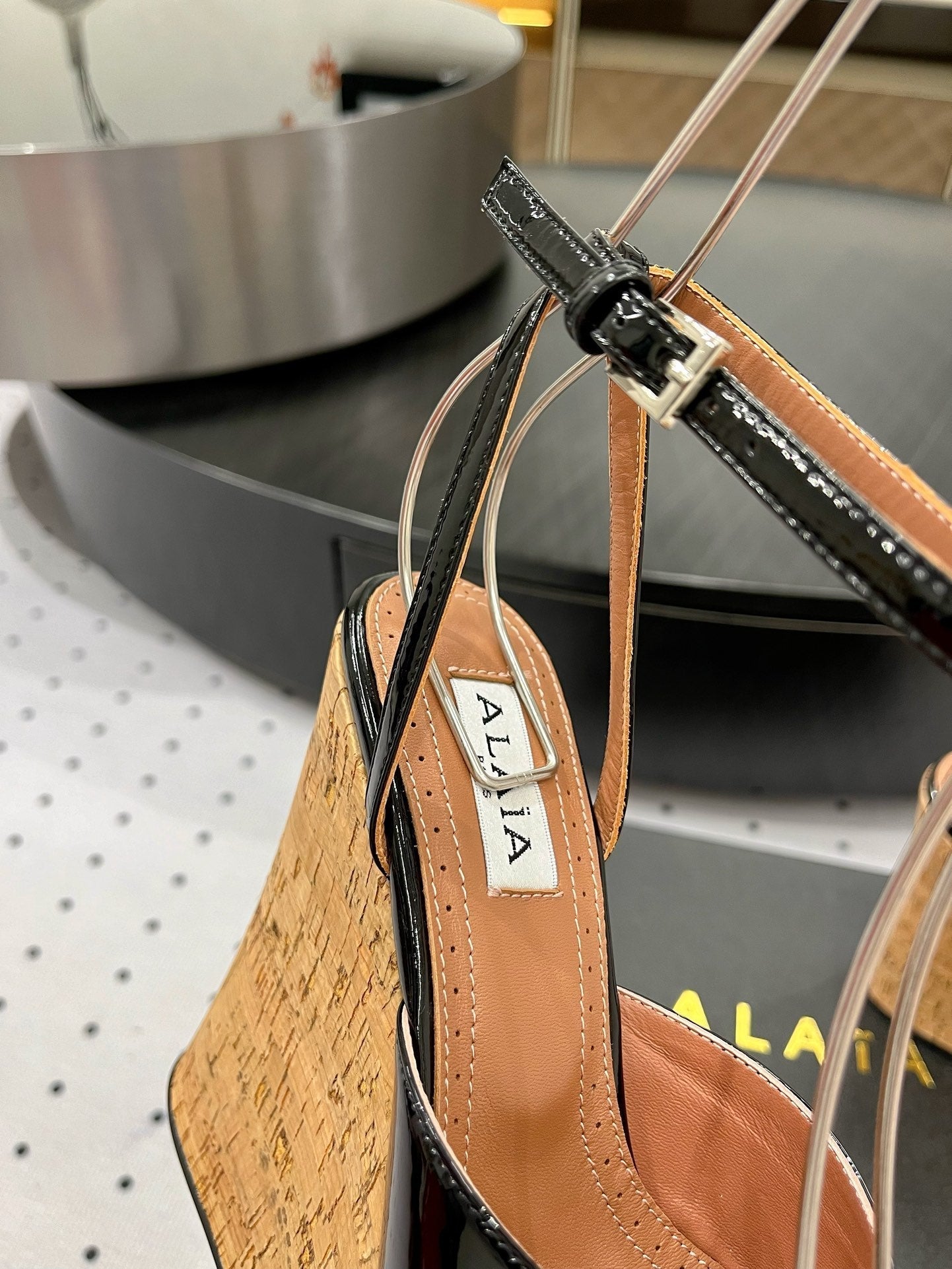Alaila Wedge Sandals 115mm In Black Glossy Lambskin 954887