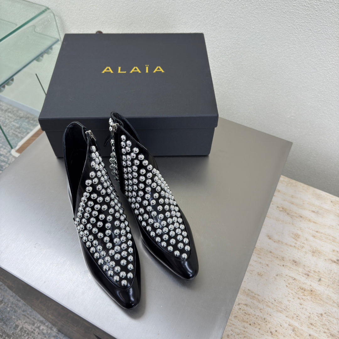 Alaia 2025 Criss Cross With Stud Ballet Flats Black Suede 293205
