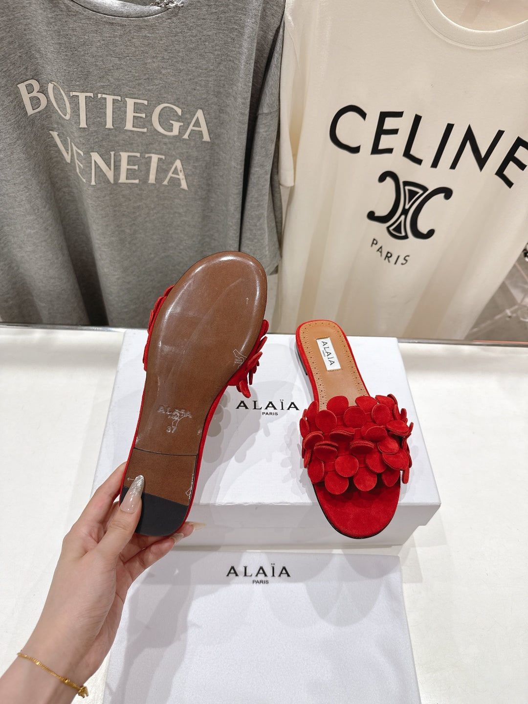 Alaia 25 Flower Slippers Red Sheepskin 302675
