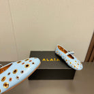 ALAIA MARY JANE SHOES IN LIGHT BLUE LAMBSKIN GOLD MIX SILVER HARDWARE