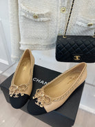CC Ballet Flats 25mm Beige Bow Tie Chain Lambskin