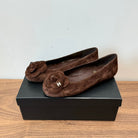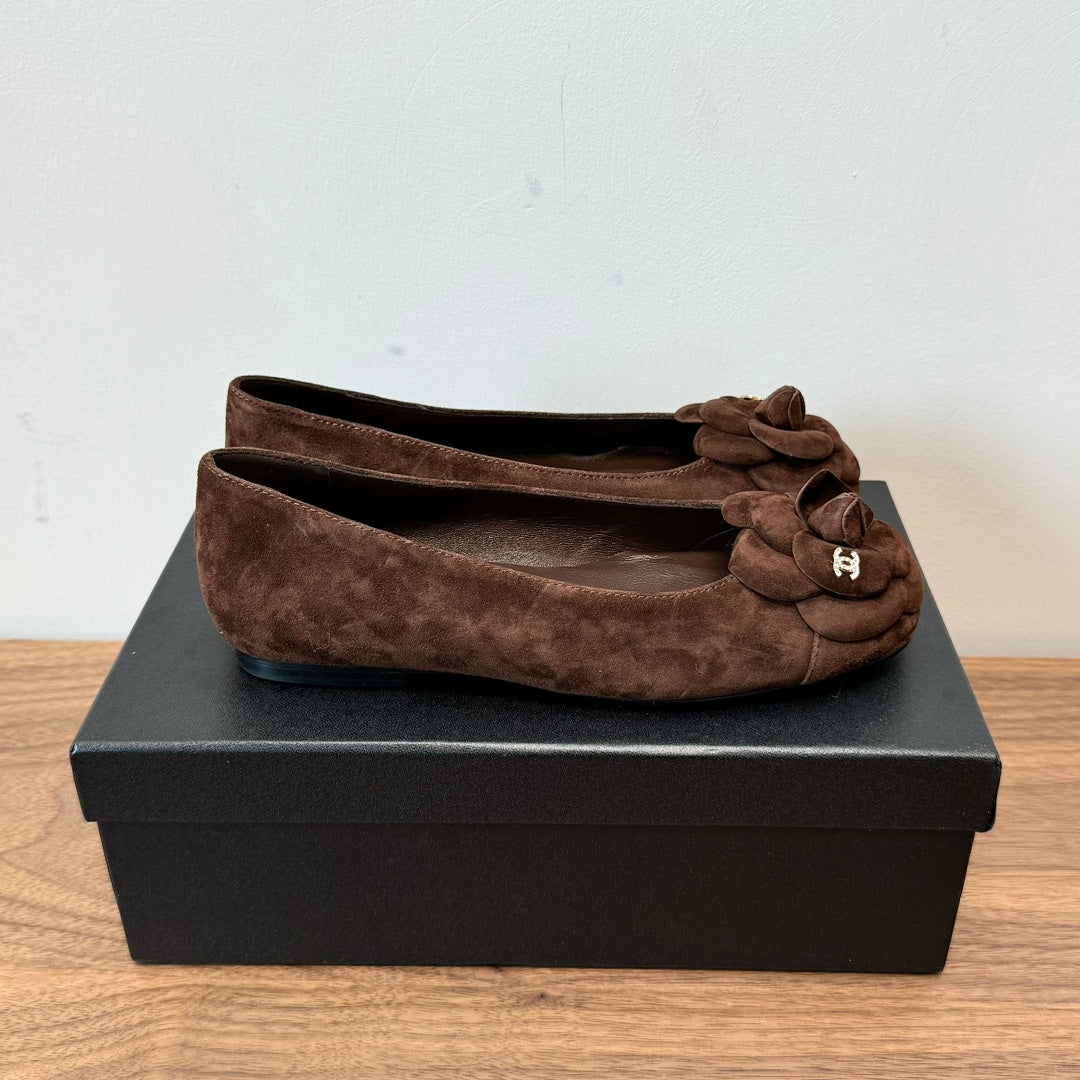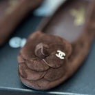 CC Ballet Flats Dark Brown With Camellia Dark Brown Suede