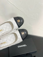 CC Ballet Flats In White Mix Black Quilted Lambskin 949711