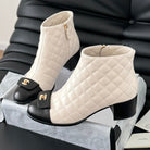 CC SHORT BOOTS 65 MM IN WHITE MIX BLACK QUILTED PATTERN LAMBSKIN