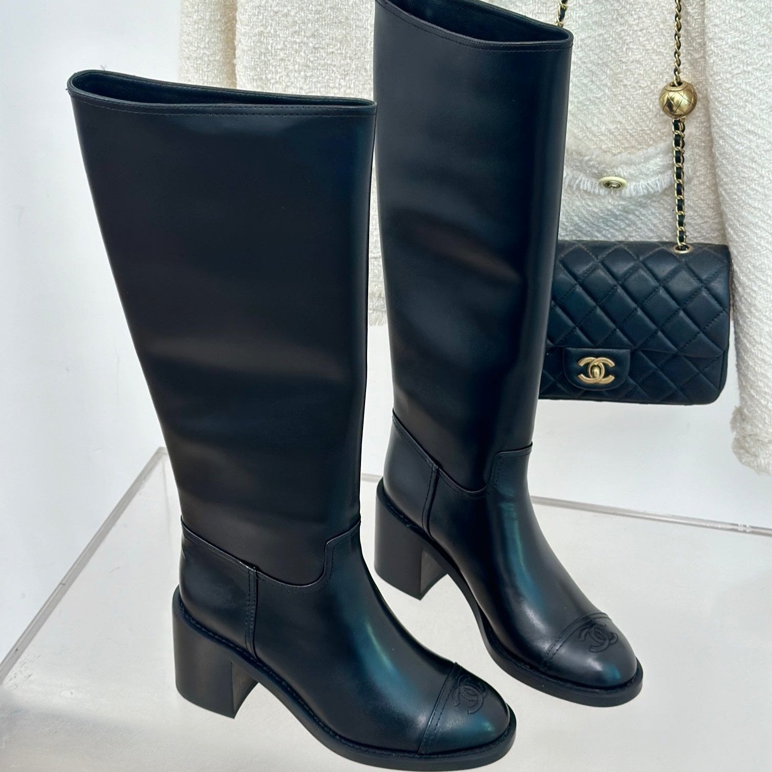 CC High Boots 70mm Plain Black Lambskin
