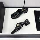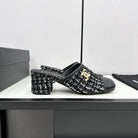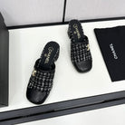 CC HIGH MULE IN BLACK MIX WHITE WOOL TWEED AND CALFSKIN