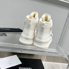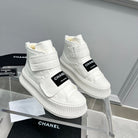 CC High Top Sneaker Thick-Soled White Rain Velvet Fabric