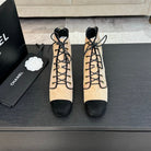 CC LACE-UP SHORT BOOTS IN SEPIA BEIGE MIX BLACK SUEDE