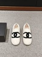 CC LOAFERS IN WHITE FLEECE WITH BLACK LOGO