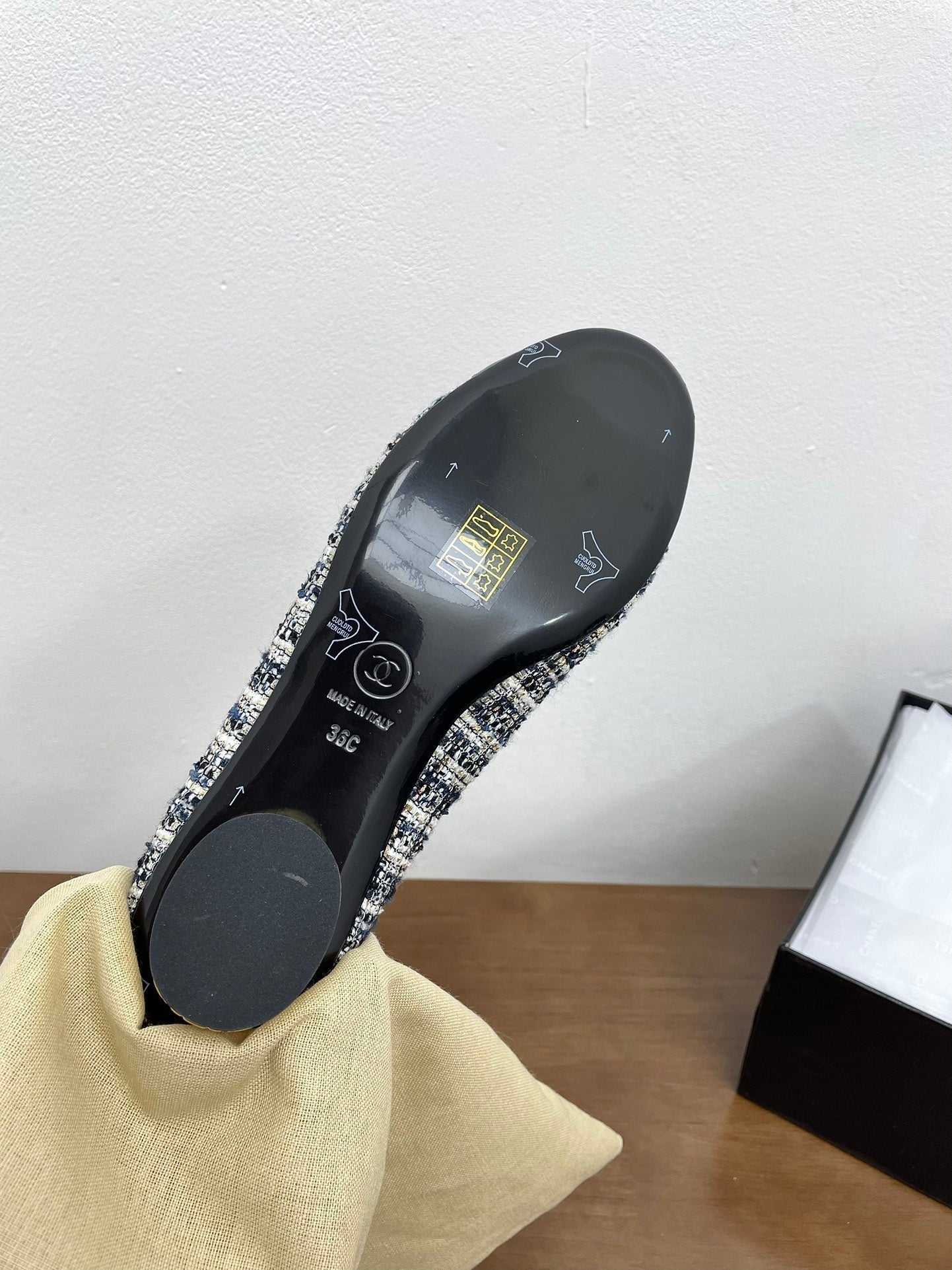 CC Mary Jane Black Tweed Farbic And Cowhide