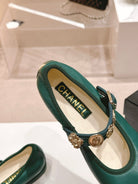 CC MARY JANES GREEN CALFSKIN LIGHT GOLD METALIC