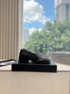 CC Moccasins Plain Black Chain Lambskin