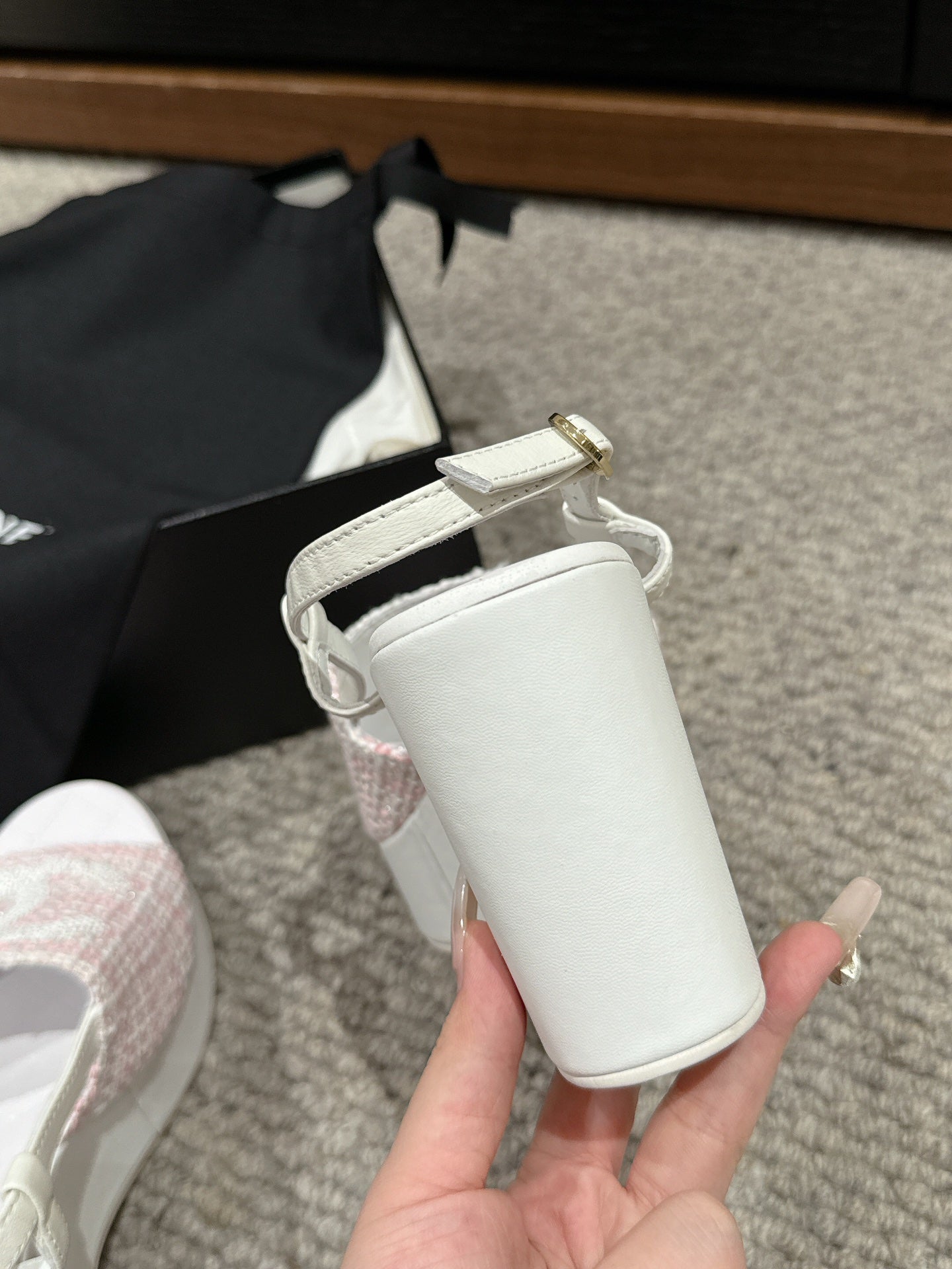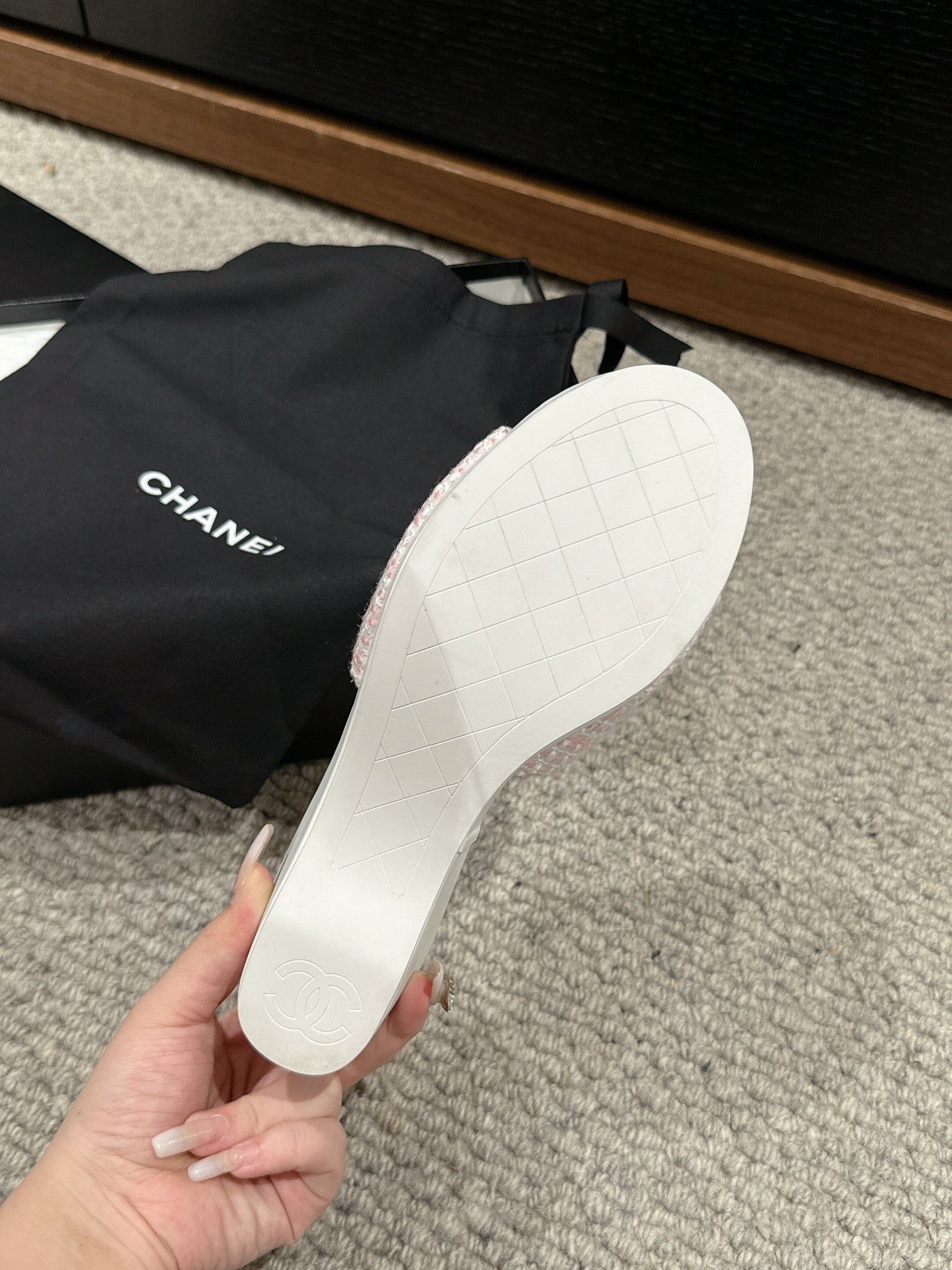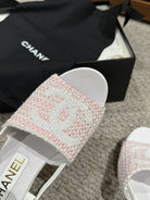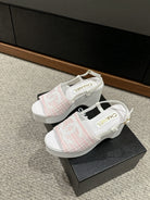 cc sandal 100 pink white tweed sequin