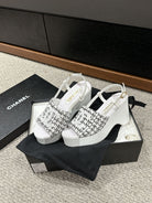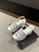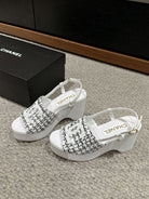cc sandal 100 white black tweed sequin
