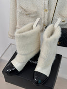 CC Short Boots 60mm White Cowhide And Wool Yarn