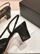 cc slingbacks 55 black lambskin embroidery grosgrain