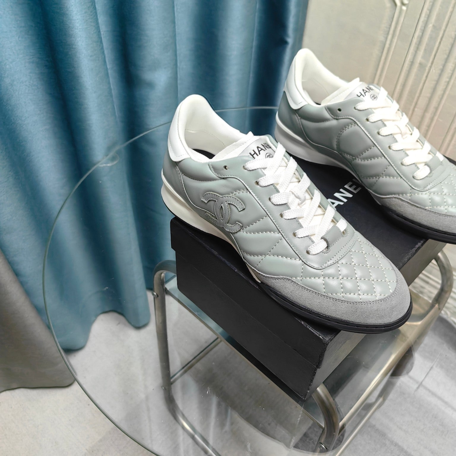 CC Sneaker Grey Quilted Cowhide And Suede
