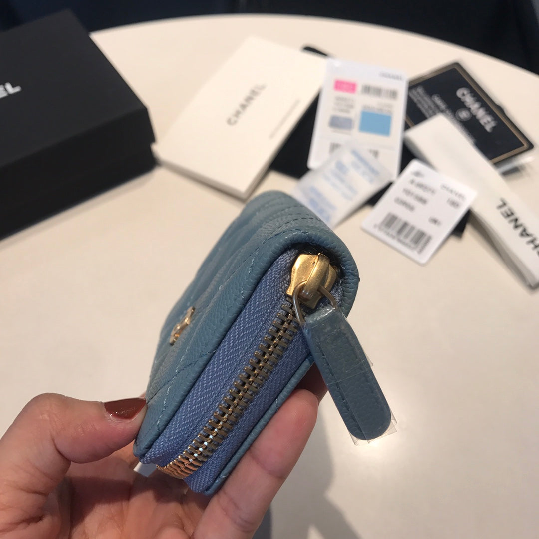 CC ZIPPED COIN BASIC PURSE 11 SAPPHIRE CALFSKIN GOLD ICON