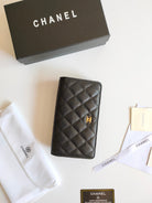 CC ZIPPED LONG PURSE 19 BLACK GRAINED CALFSKIN GOLD ICON
