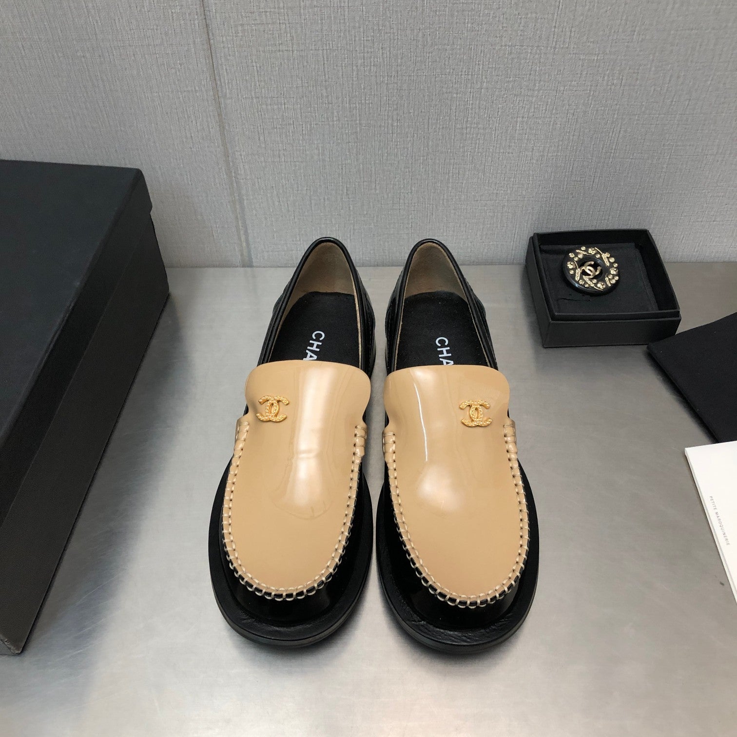 Double C Beige Cream Loafers Sheepskin