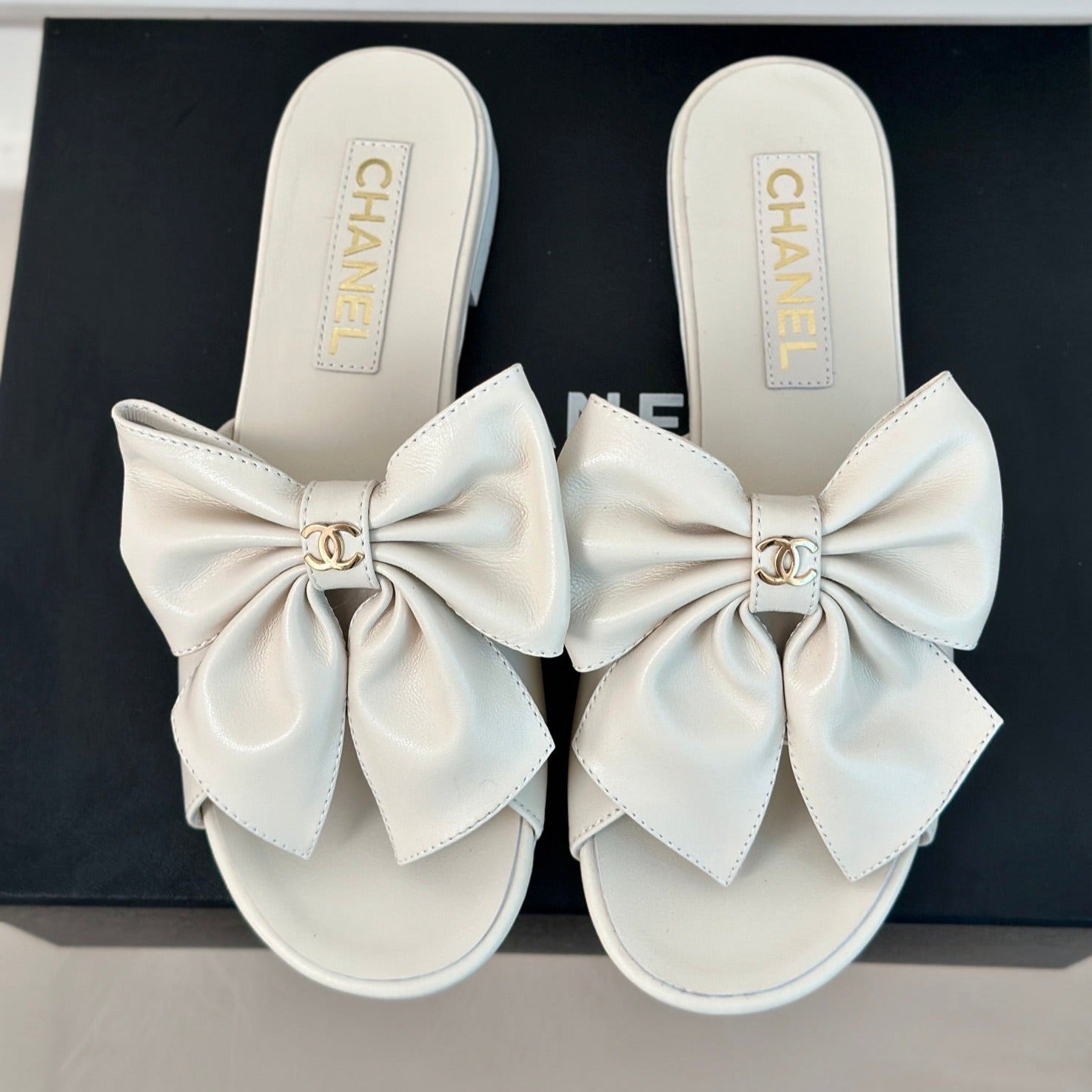 cc big bow flat sandals white lambkin