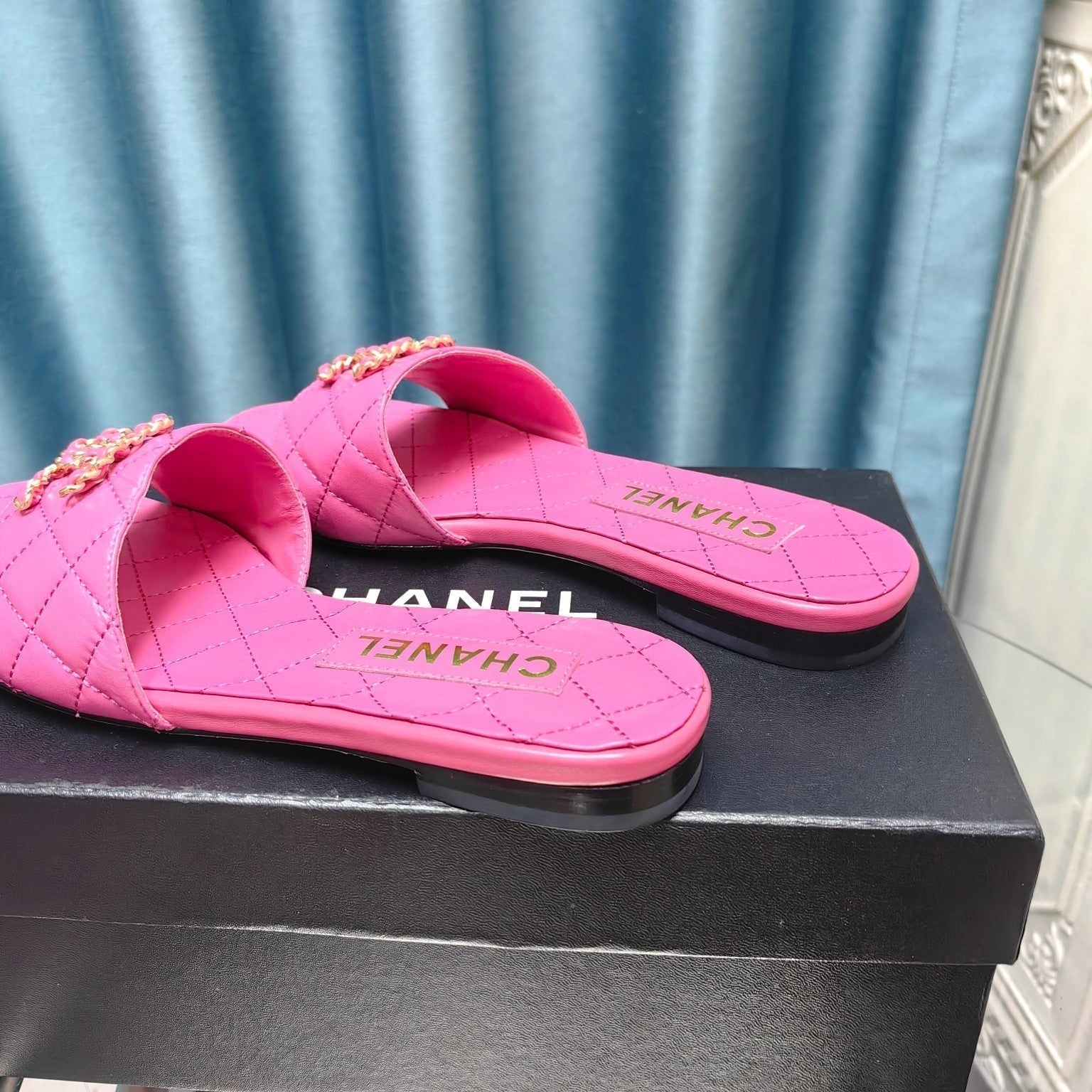 mule sandal quilted dark pink calfskin