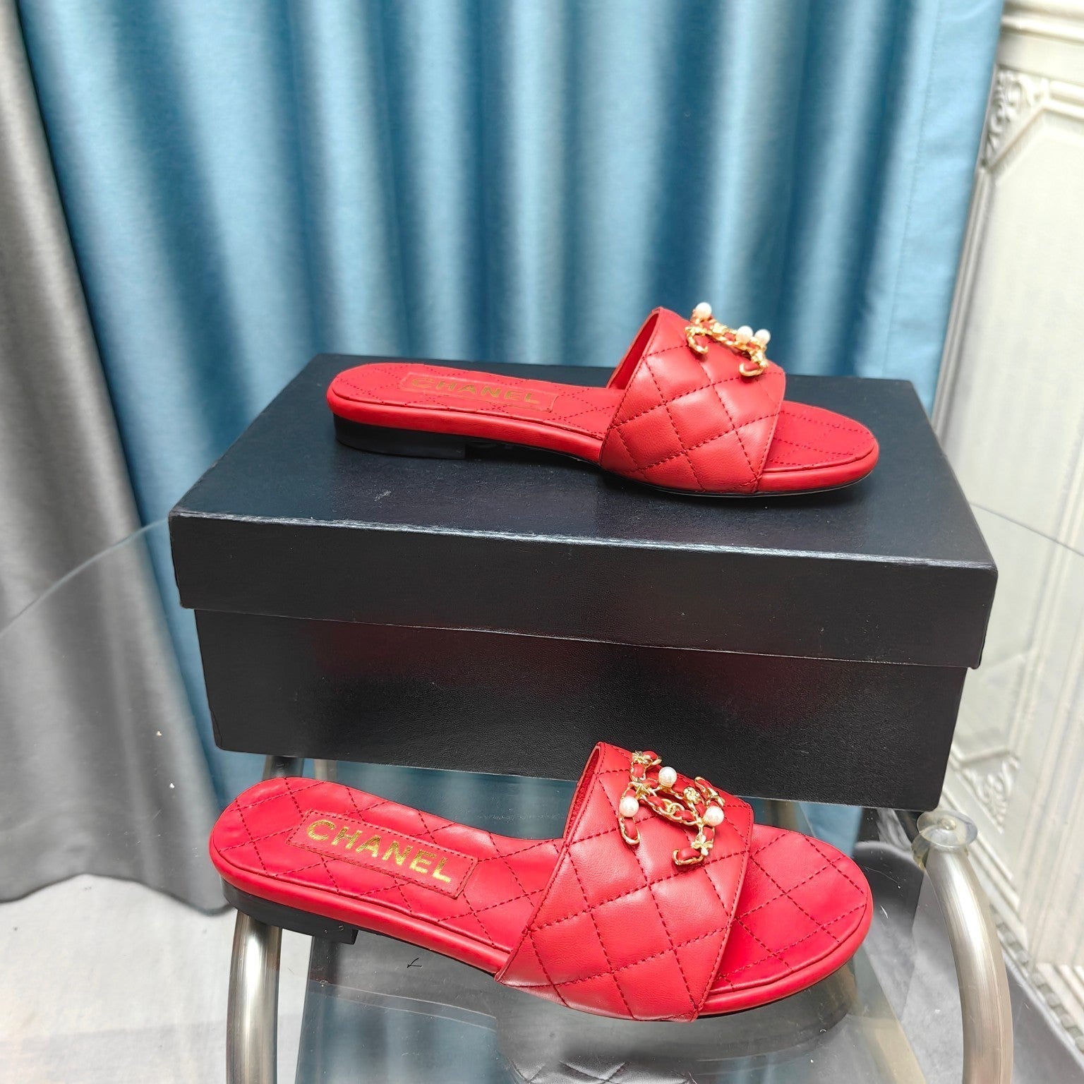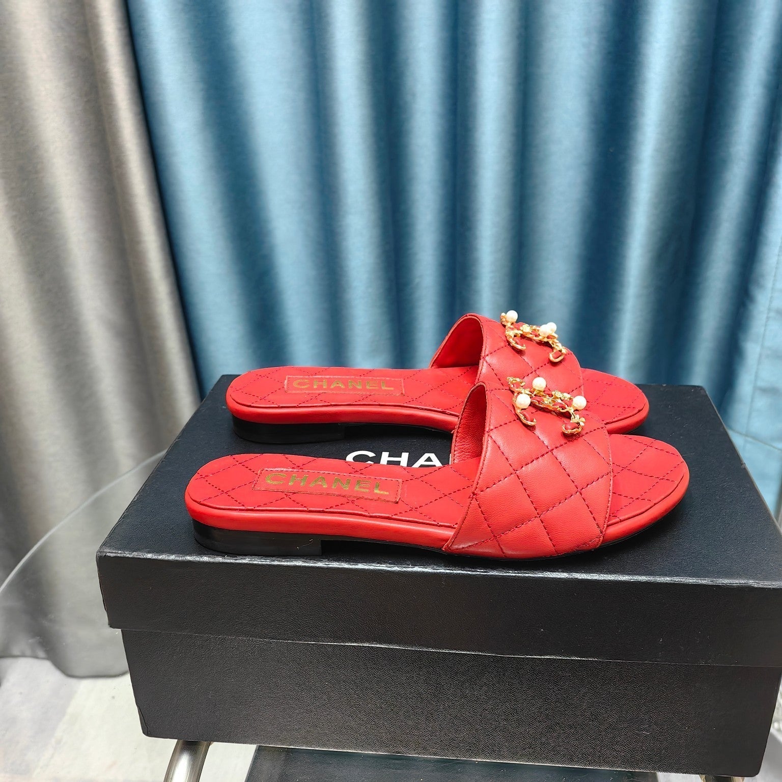 mule sandal quilted red calfskin mop