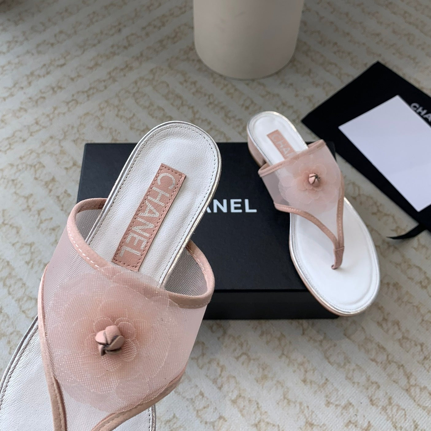 camellia thong sandal pink lace
