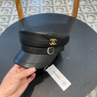 NEWSBOY CAP IN BLACK CALFSKIN 421107