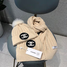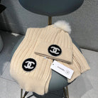 SET BEANIE HAT AND SCARF IN BISQUE BEIGE WOOL 424022