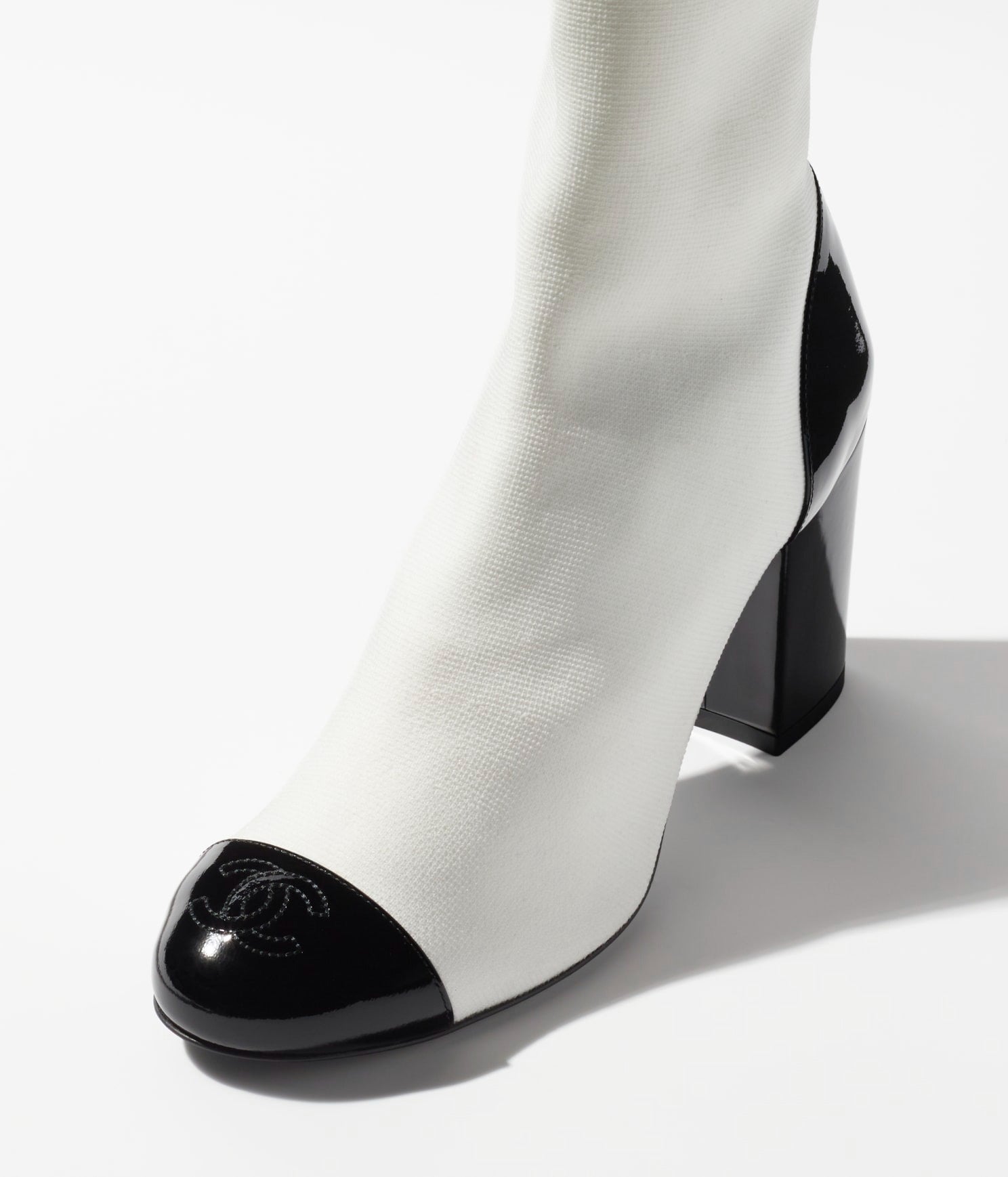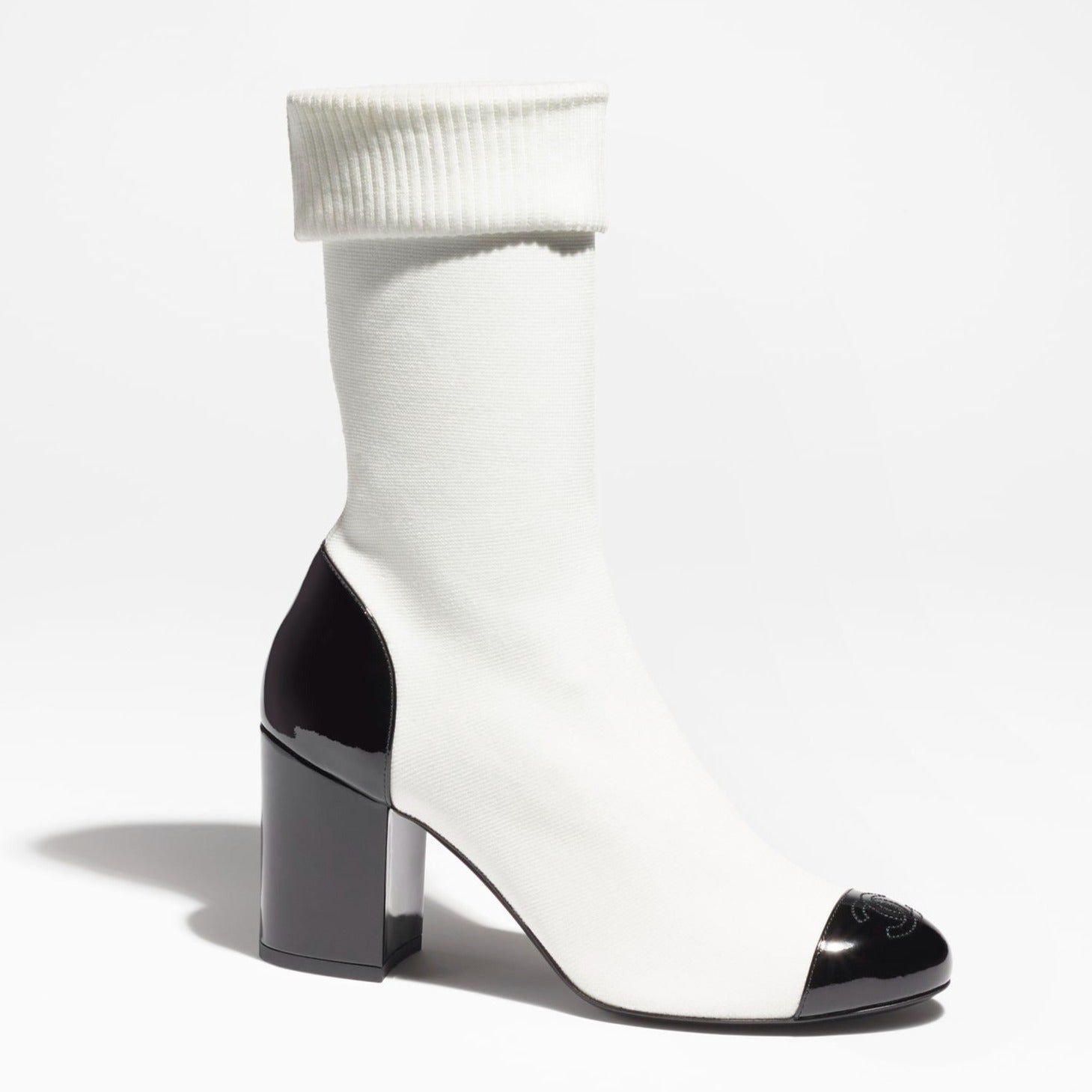 short boots white black knit patent calfskin