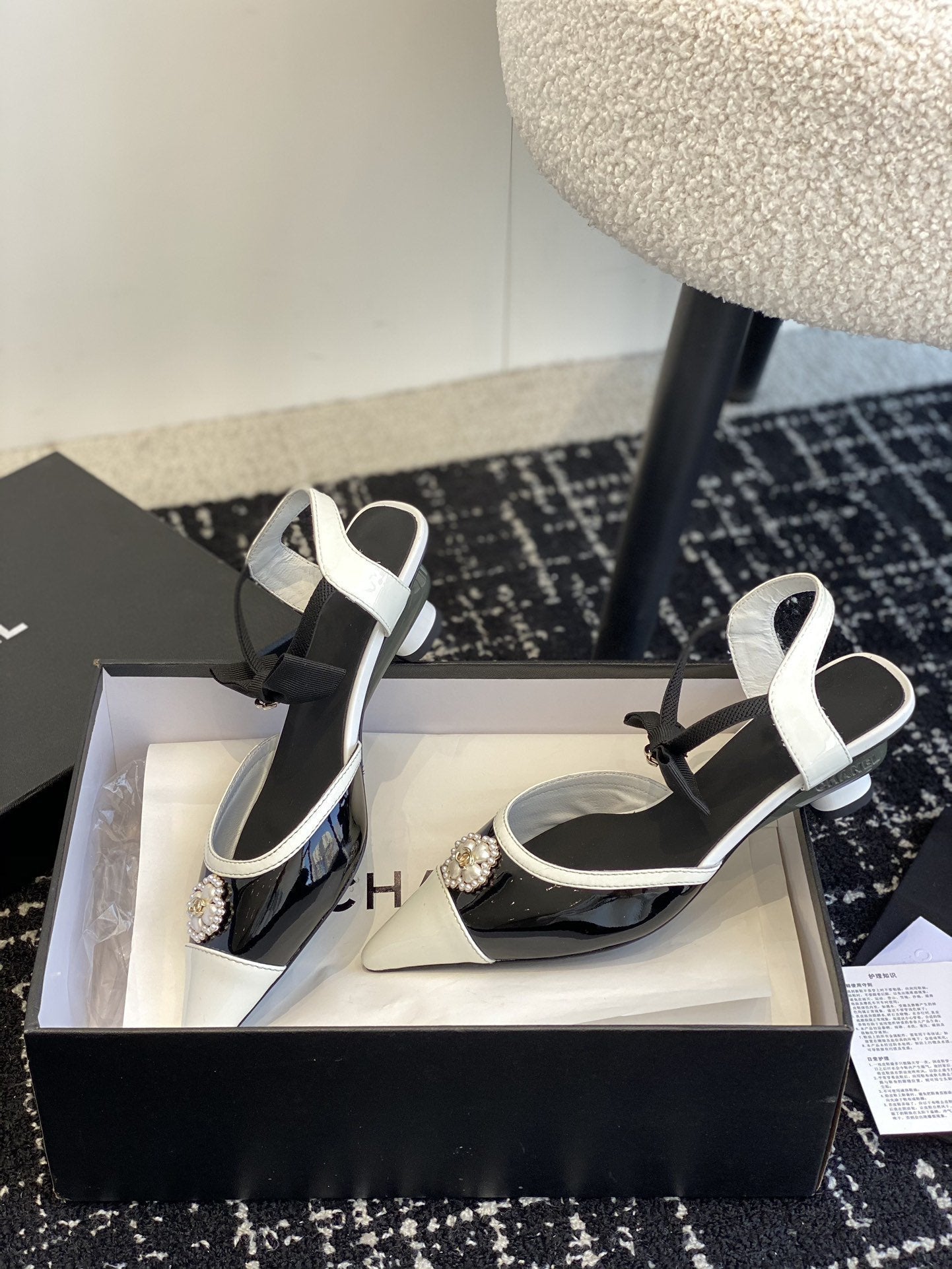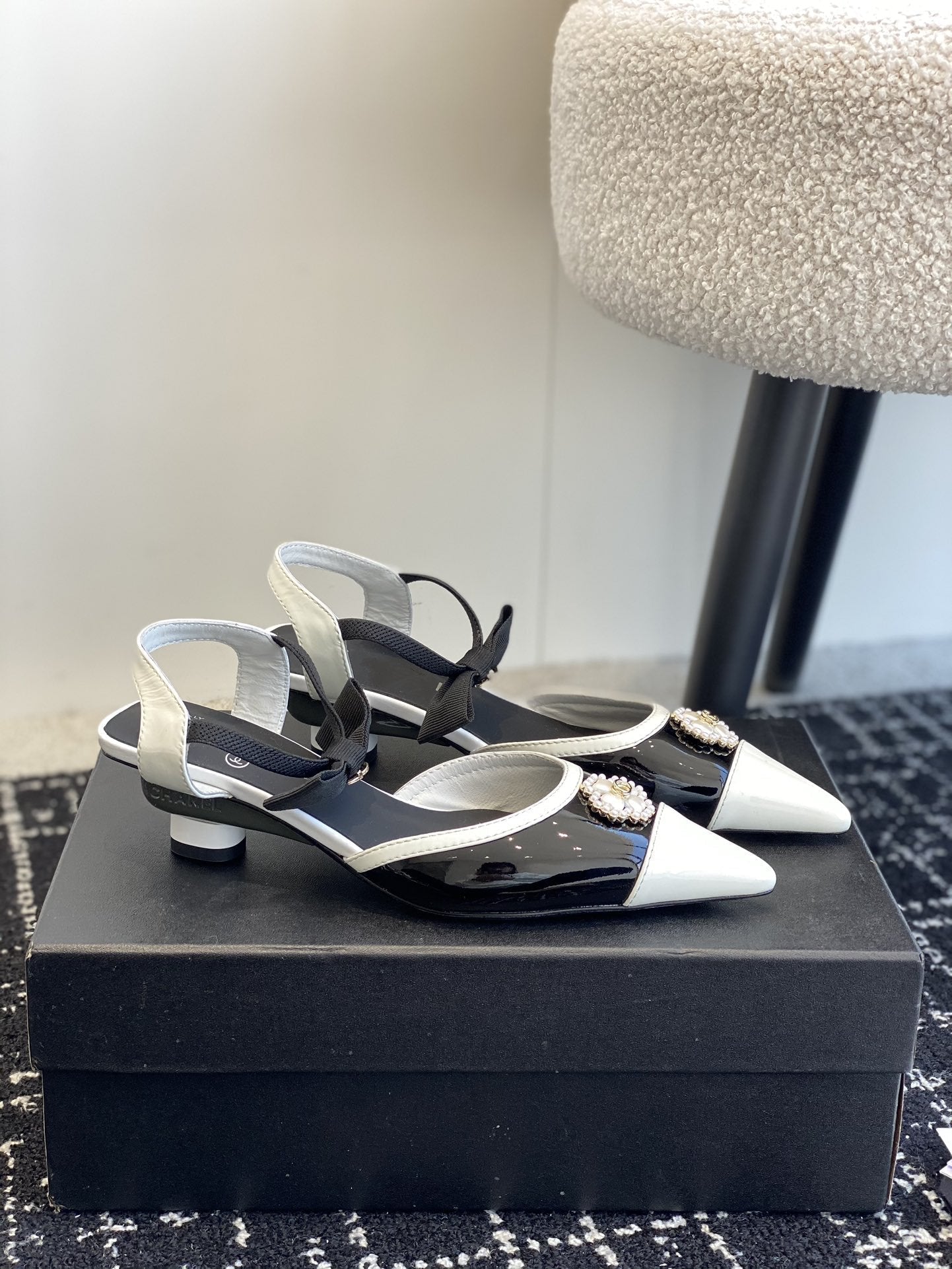slingbacks 45 black white patent calfskin