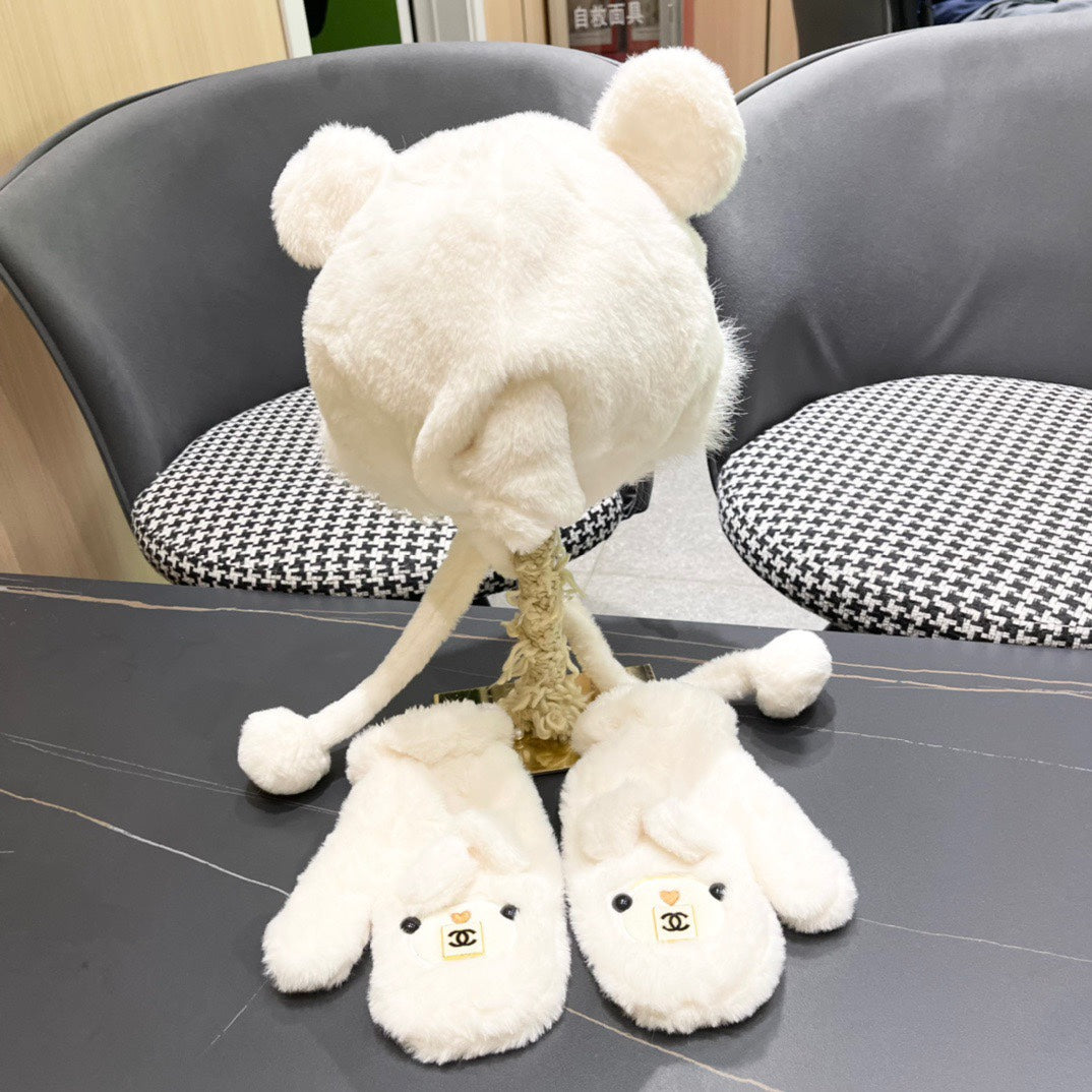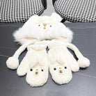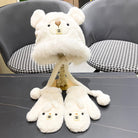• Three-Piece Set for women, featuring a cute bear-shaped plush hood, scarf, and gloves, ideal for autumn and winter.