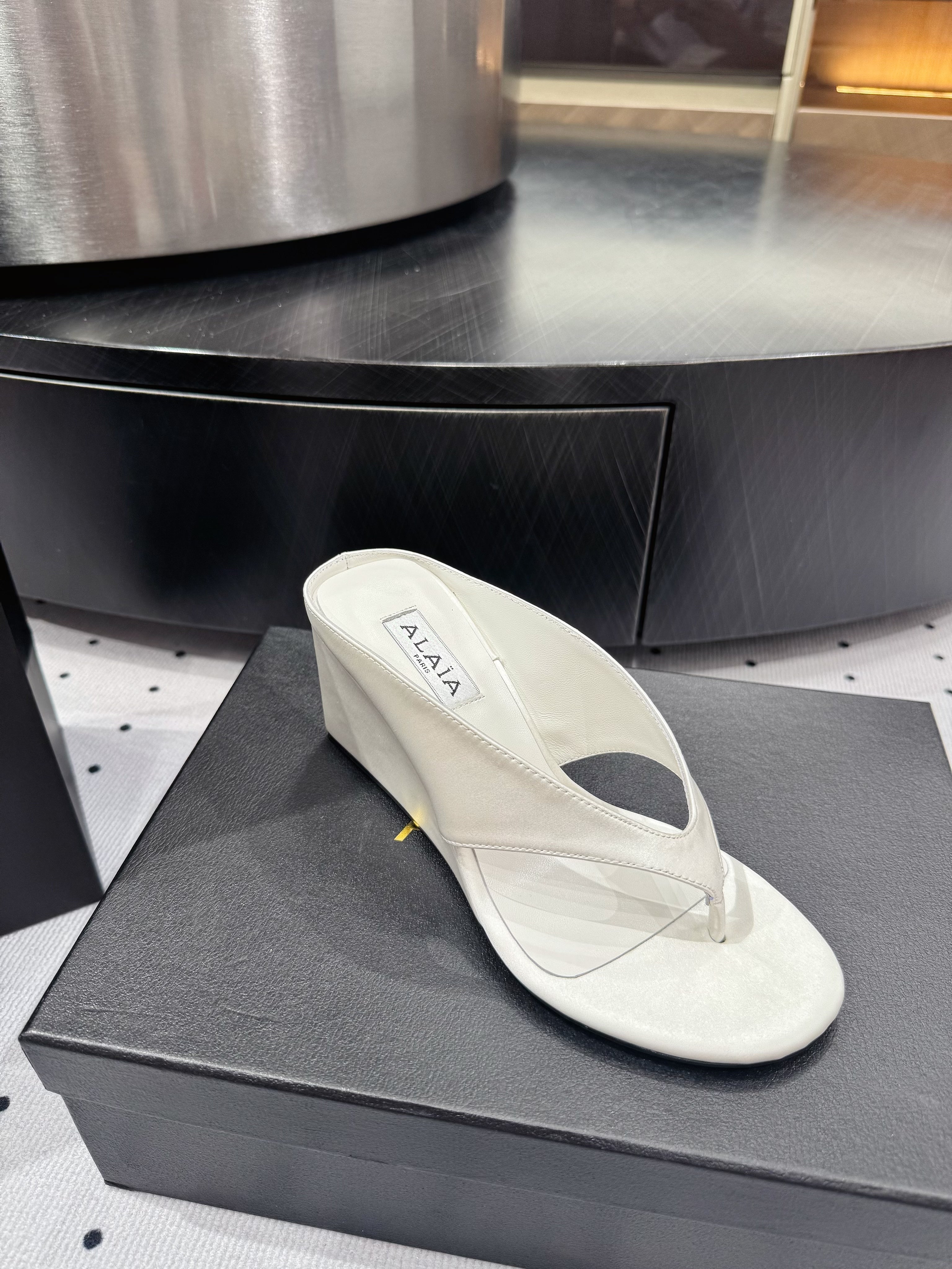 Alaia 25 Cube Thong Mules White Sheepskin 296089
