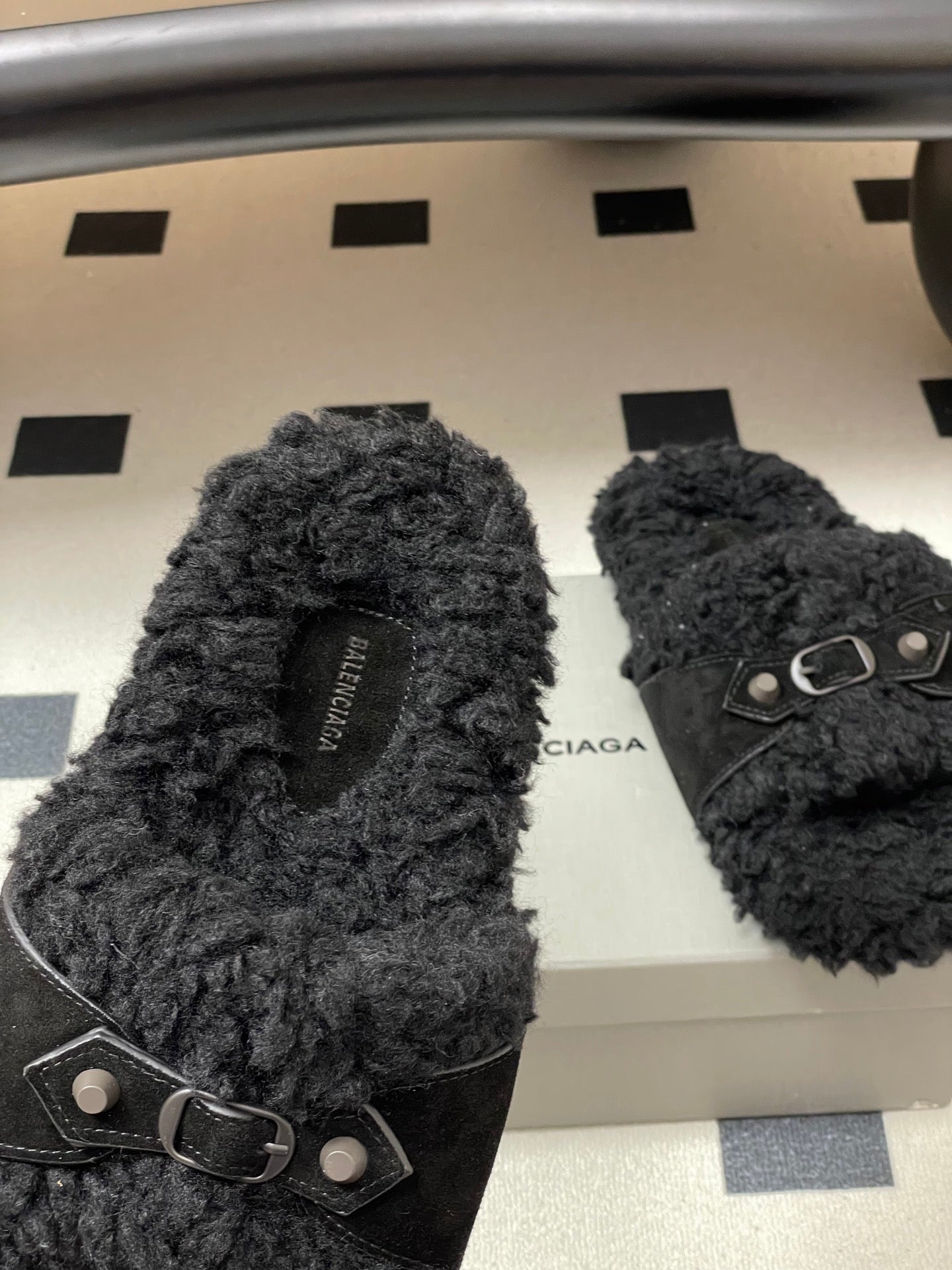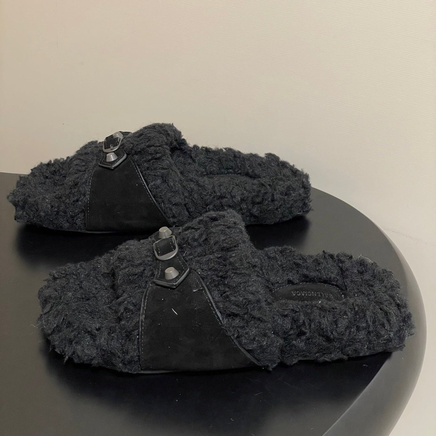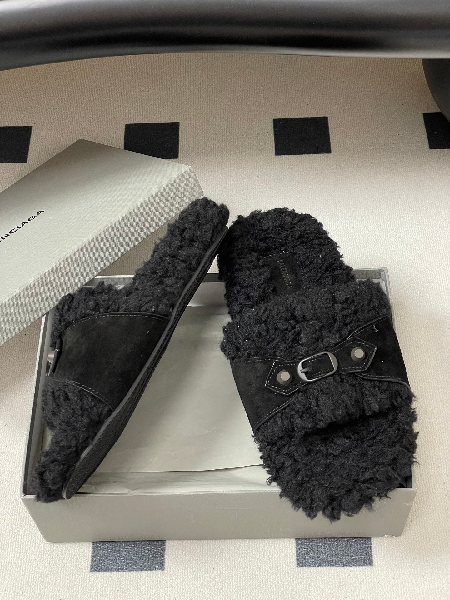 Balenciaga Classic Buckle Slippers Black Wool 535030