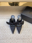 BARBARA BIG BOW MULES IN BLACK SILK
