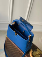 capucines mm 31.5 cobalt blue taurillon leather gold hardware