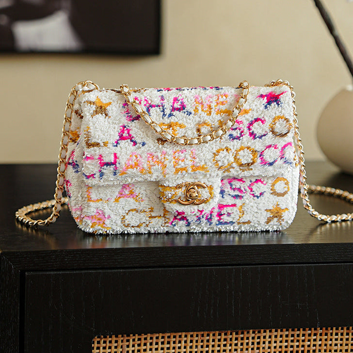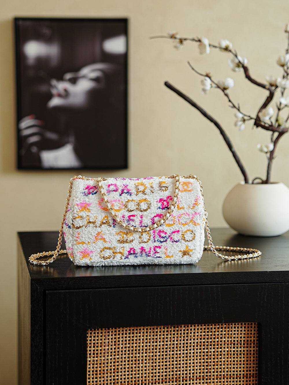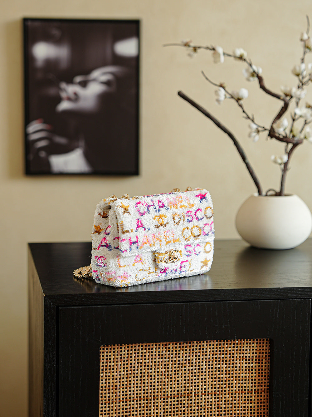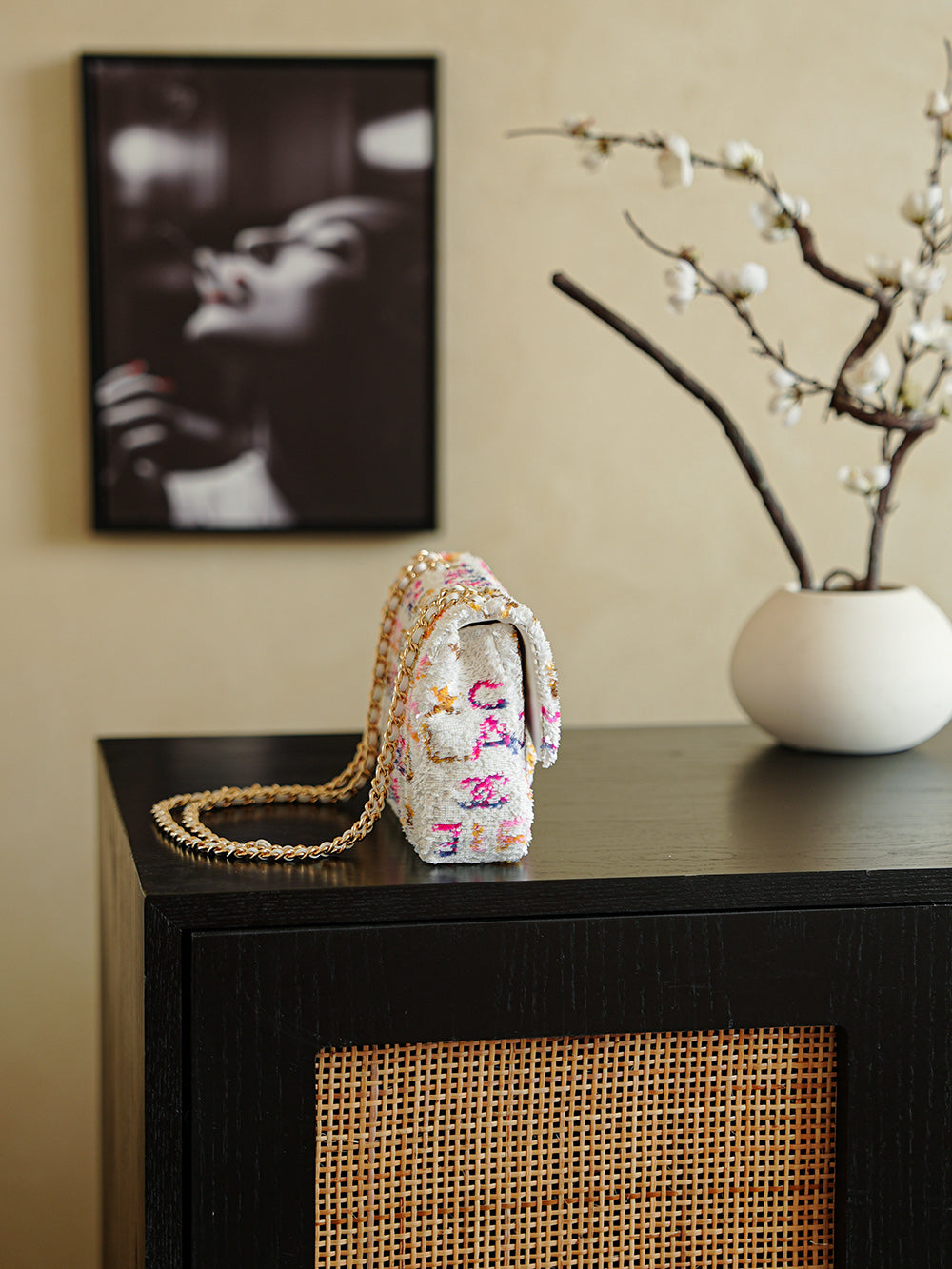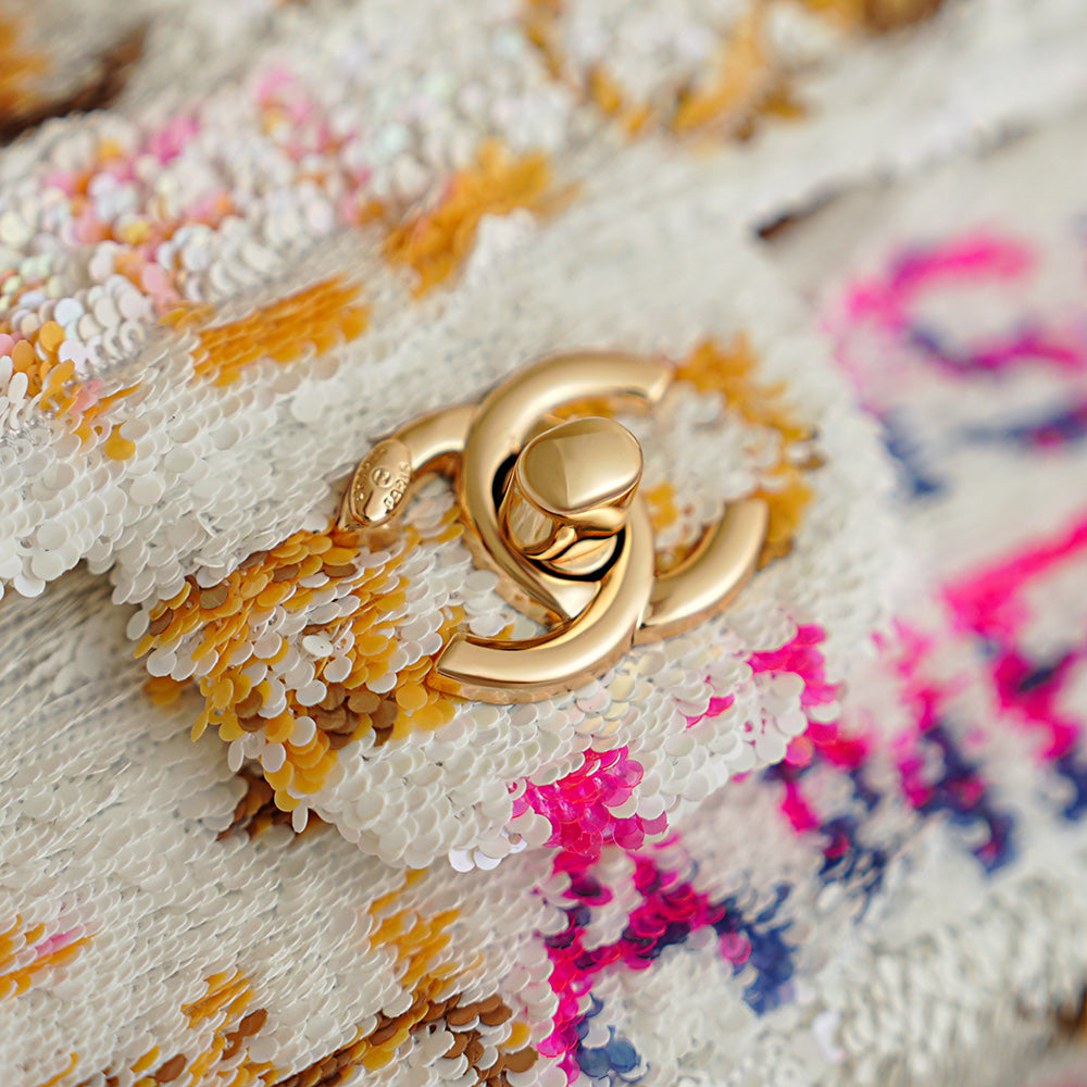 CC 2025 Flap Bag White Mix Colors Sequin 308604