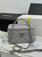 CC 25P Vanity Case 17cm Light Gray Leather Silver Hardware 243466