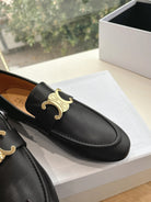 CELINE Buckle Triomphe Loafers Black Leather