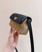 Chanel 2025 Block Flap Bag 20cm Black Beige Lambskin Suede 343043