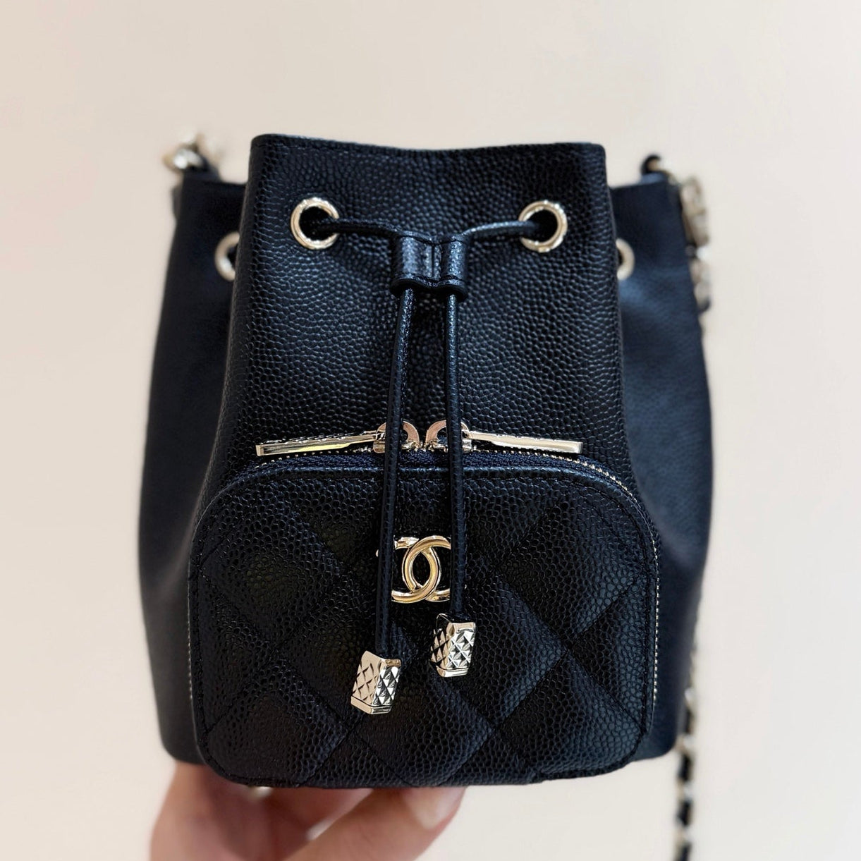 Chanel 2025 Mini Bucket Bag 15cm Black Calfskin 343052