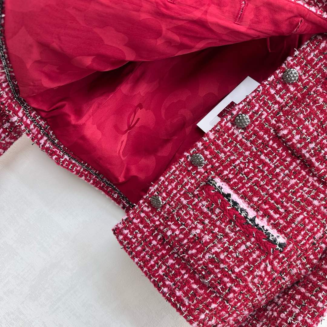 Chanel 25 Coat With Lapel Brooch Red Wool 319938