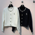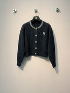 Chanel 25 Round Neck Sequined Custom Button Knit Cardigan Wool 317963