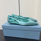 CUT-OUT BALLERINA FLAT IN TURQUOISE BLUE SATIN ATTACHED BEAD BUCKLE