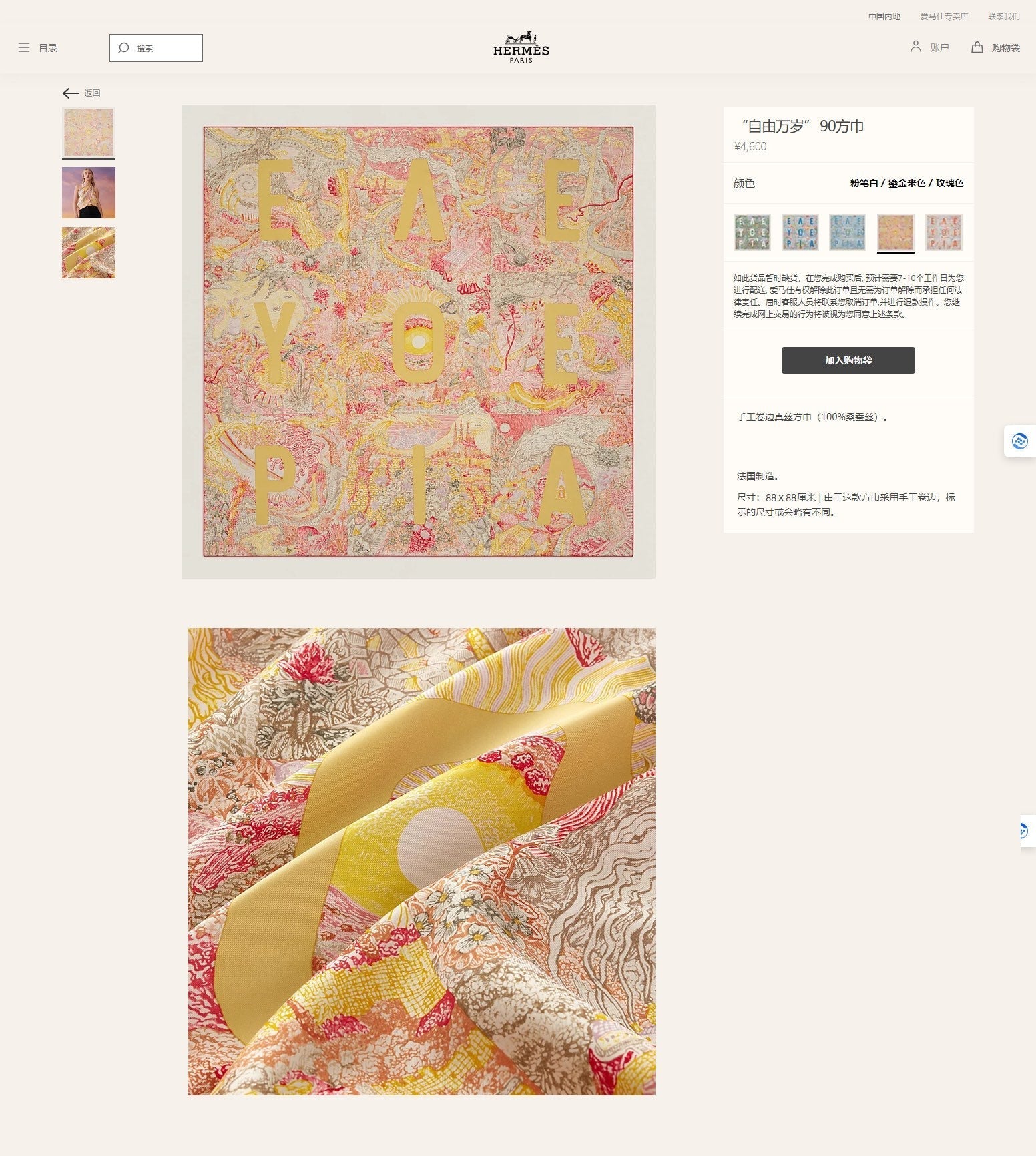 Material: 100% Silk Twill