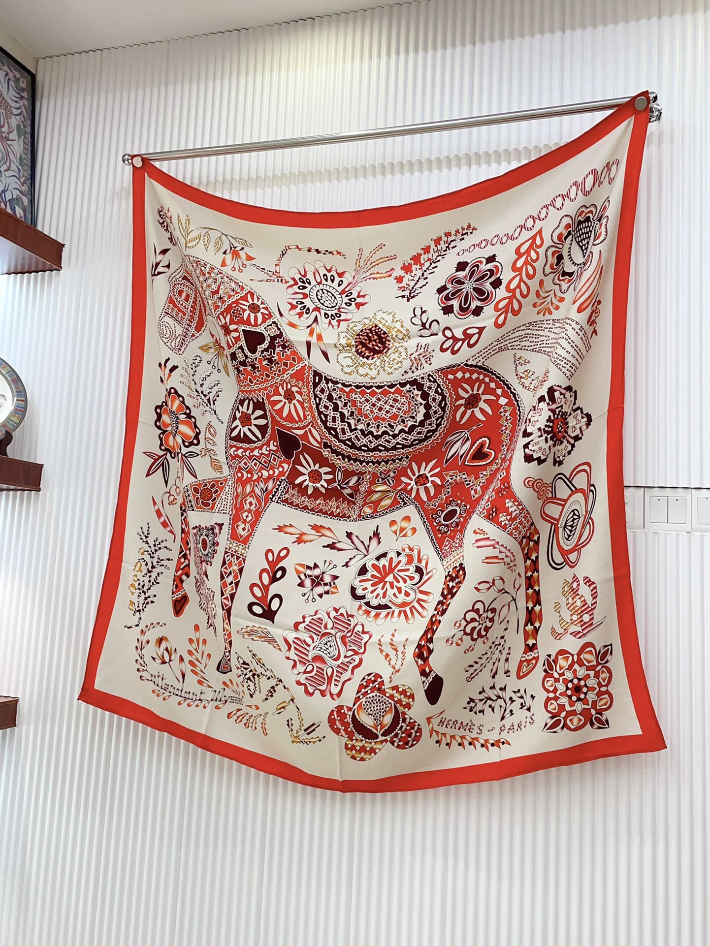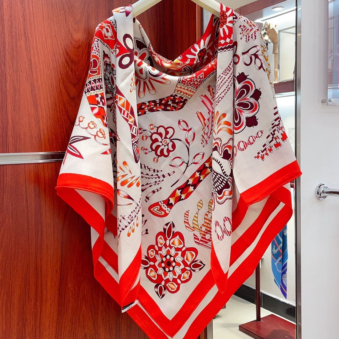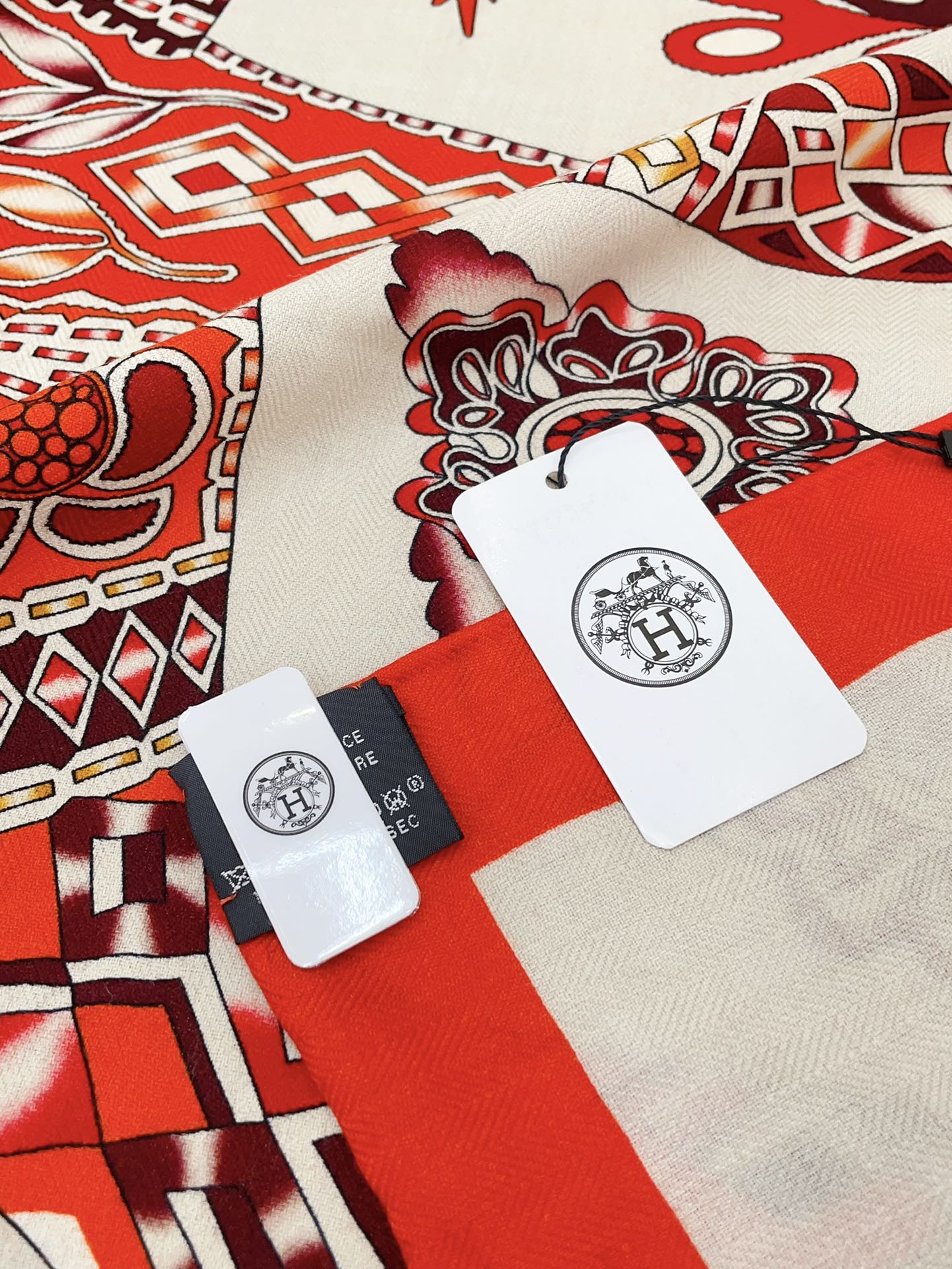 En Attendant Ulysse Shawl 140 CM In Red Colorful Cashmere And Silk 294496